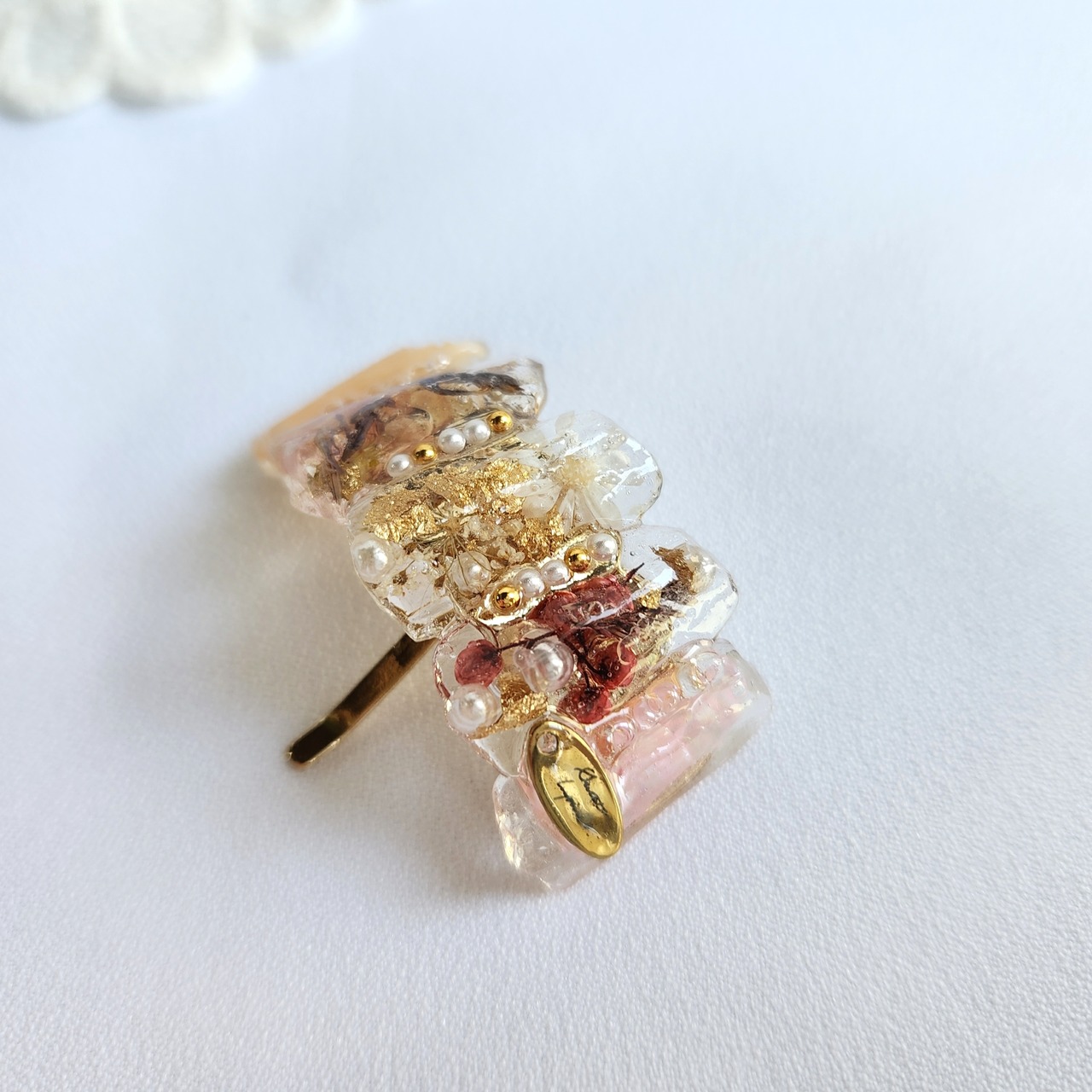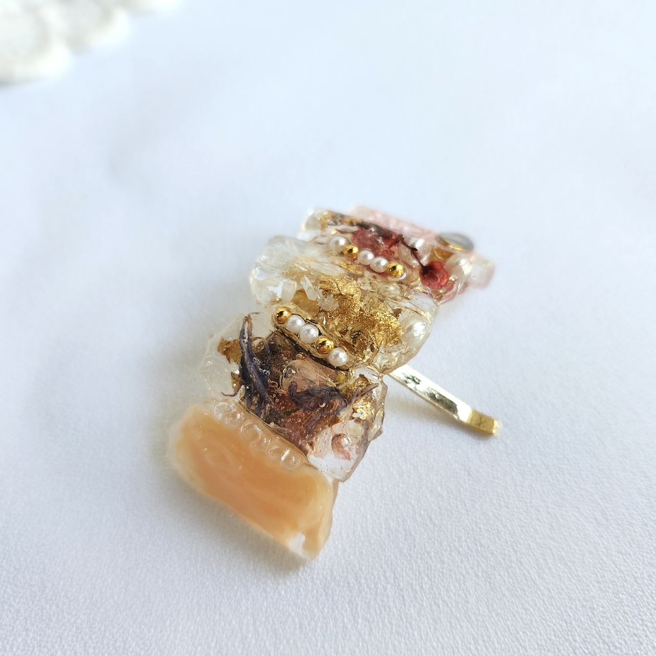 【淡いベージュ】大人綺麗め 鉱石 フラワー レジン♡上品 簡単 アレンジ お呼ばれ ヘアアクセサリー